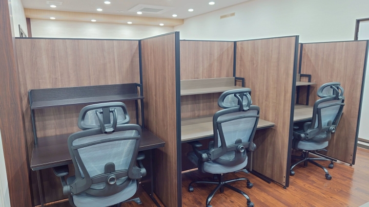 おしゃれなカフェのような、クールかつ高級感のある自習室です。1号館の自習室とは違う雰囲気ですので、両方の自習室を気分により使い分けることができます。静かな空間ですので、特に集中したいときにオススメの自習室です。
